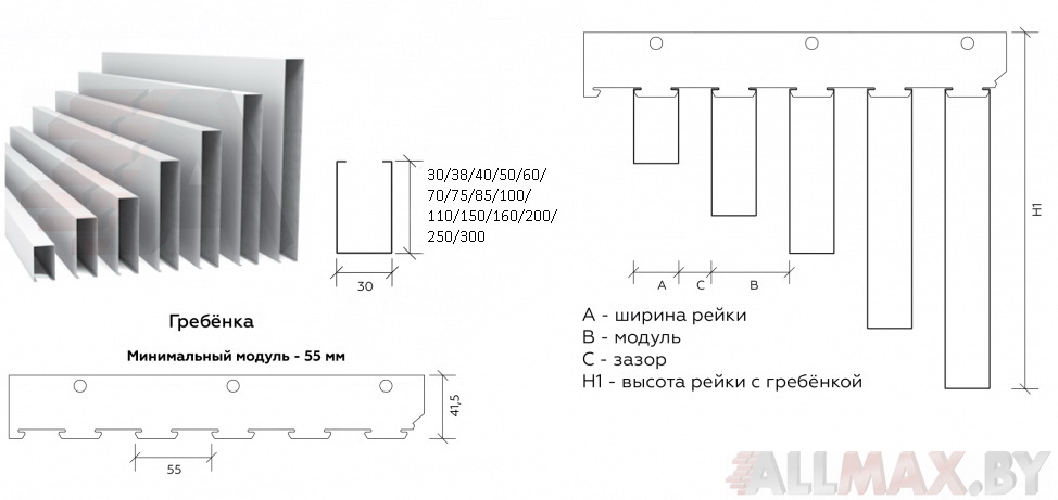 - Модель: Фасадная кубообразная рейка