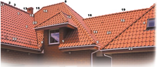 Широкий ассортимент черепицы Roben дополняют кровельные аксессуары. Это и различные виды коньковой черепицы, крайние, вентиляционные и антенные черепицы, а также, разного рода ленты и металлические элементы (ступени, снегозадерживающие заборы), необходимые для создания эффективной кровельной системы. Предлагаемые элементы обеспечивают быстрый и качественный монтаж кровли, позволяют воплотить любые дизайнерские задумки и архитектурные решения, придают кровле законченный эстетический вид. Все керамические элементы производятся в цветах основной черепицы.