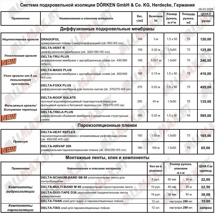 Лента для защиты кровельной конструкции от проникновения влаги внутрь кровли.Рулоны DELTA-SCHAUM-B..