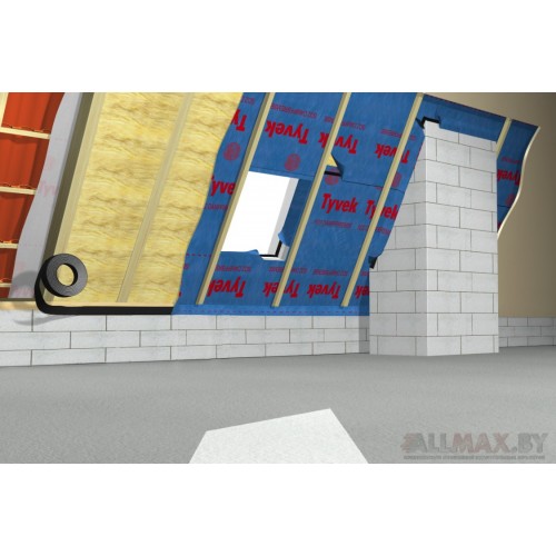 Мембрана Tyvek Airguard SD5 раскатывается либо параллельно, либо перпедикулярно к стропилам и крепиться к ним помощи скоб и степлера с расстоянием не более 50 см. Маркировочная сторона должна быть обращена внутрь комнаты. Места нахлестов рулона между собой, а также места примыкания к элементам строительных конструкций проклеиваются специальными лентами и скотчами.