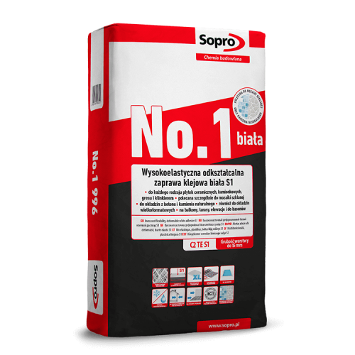 Высокоэластичный, деформируемый клеевой белый раствор Sopro №1/996 Extra